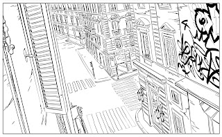 À noter que j'avais dessiné Marie avec une culotte, et que... une petite brise romaine aidant, le personnage féminin d'une nuit à Rome se trouve dépourvue d'un de ses accessoires...